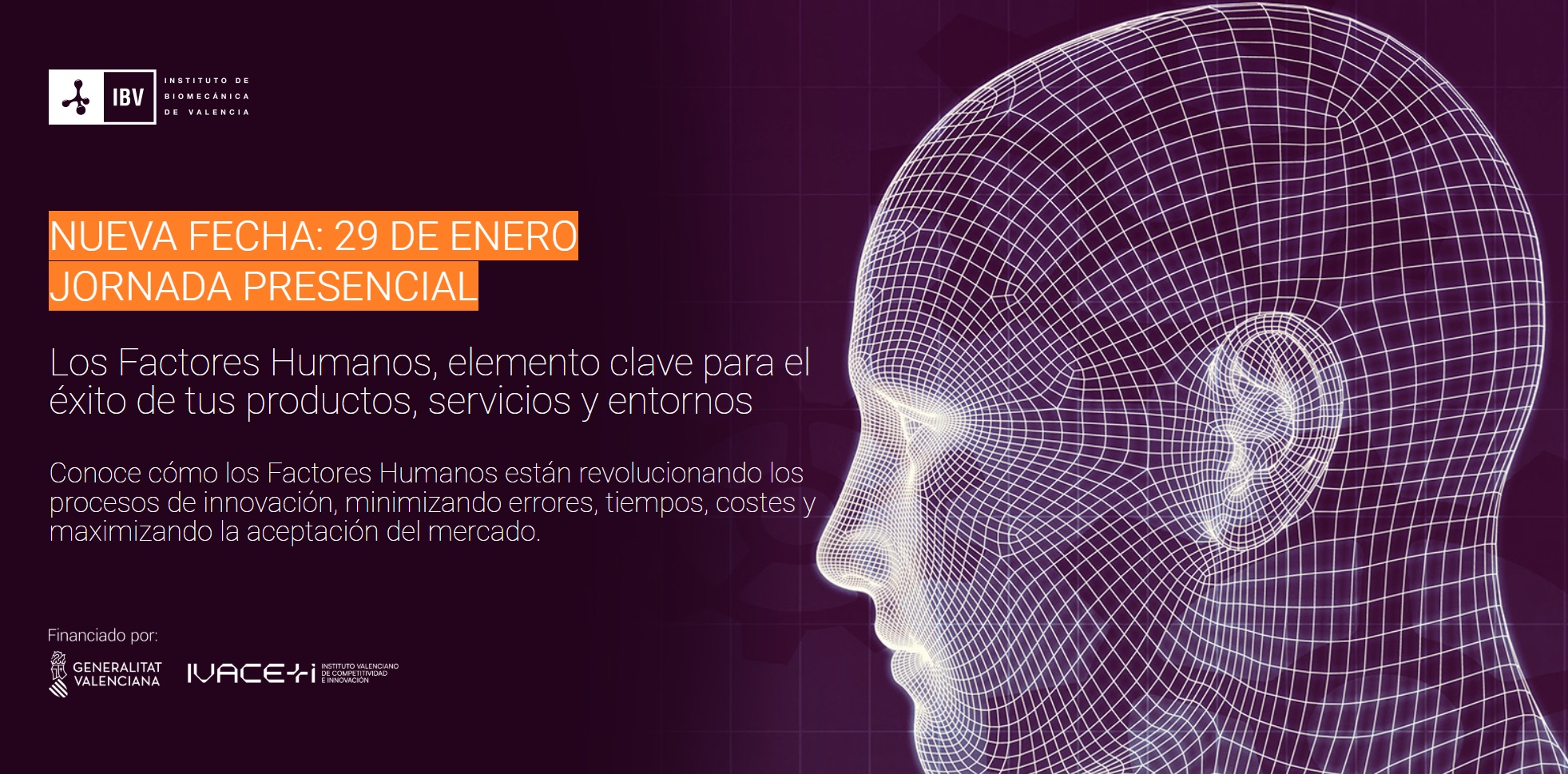 La jornada tendrá lugar el 29 de Enero de 2025 y tendrá un formato presencial en las instalaciones del Instituto de Biomecánica (IBV) en horario de 9.15 h. a 14.30 h.